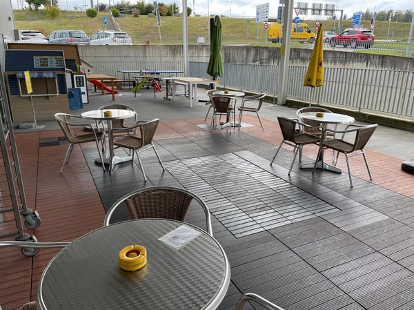 Boissons : Café, Espresso, Thé, Chocolat chaud, Soda, Coca cola, Thé froid, Eau minérale gazeuse, Eau minérale non gazeuse, Jus d'orange, Jus de pomme, Redbull, Sirop, Vin, Bière, Bière Pression.